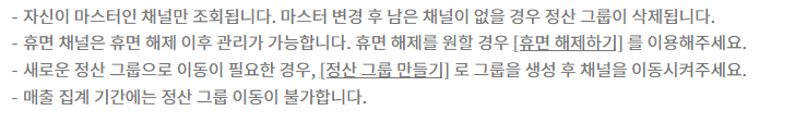 - 정산 그룹 수정 가능 기간 : 7일부터 다음달 24일까지