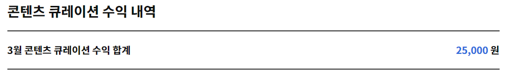 만원 이하로 나올거라 생각했는데 역시나 기대와 욕심을 버리니까 이 금액도 감사할 따름입니다. 3월부터는 거의 보드 발행을 안하고 있어 아마 다음달 정산부터는 카카오뷰 큐레이션 수익이 확 줄거 같습니다.