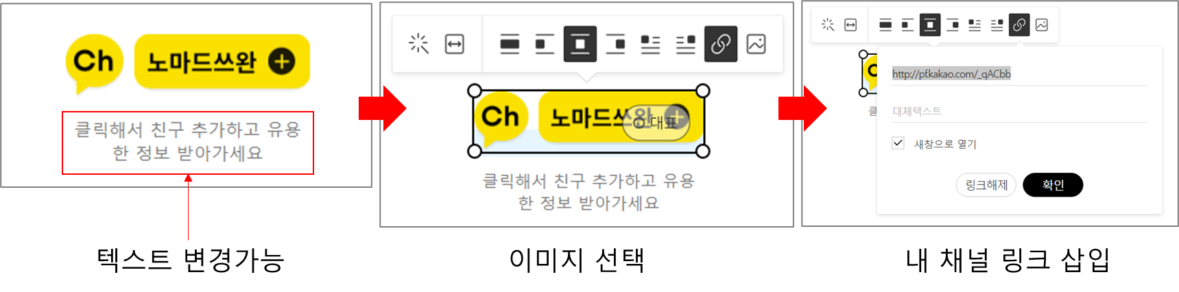 서식쓰기에서 저장한 배너 이미지를 불러와요. 그리고 이미지 설명 글을 넣어요. 링크까지 달아주면 끝!! 완전 간단!