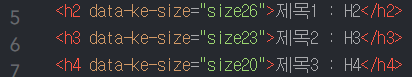 H태그에 대해 간단히 설명해 드리겠습니다. 티스토리 블로그의 경우 제목이 H1으로 자동 지정됩니다. 본문에서는 소제목을 H2~H4까지 적용할 수 있습니다. 우측 상단의 기본모드를 HTML로 바꾸시면 아래와 같이 태그가 적용된 것을 확인하실 수 있습니다.